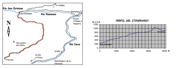 La presente ruta la catalogamos como la más dura y complicada de las que figuran en esta guía. Es una ruta utilizada antiguamente por los pastores que utilizaban estos complicados pasos naturales como vía de comunicación para realizar transacciones comerciales. De ahí que siempre haya habido una importante relación personal entre los habitantes de San Esteban y los de Tresviso.